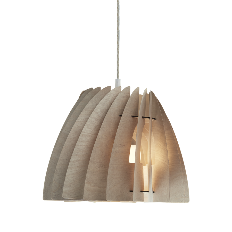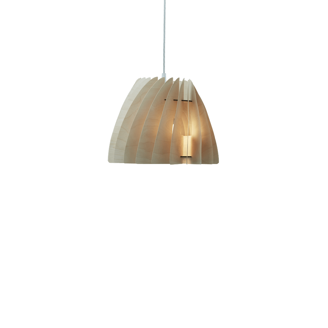 Lamp of volcanic shape. Light enters through the petals and crosses its construction which resembles lava flowing the slopes. Petals of the lamp are made of ultra thin birch plywood. Lightweight and slim lampshade to a simple self-assembly. Harmonically protruding petals give the lamp spacious look and dynamic character.