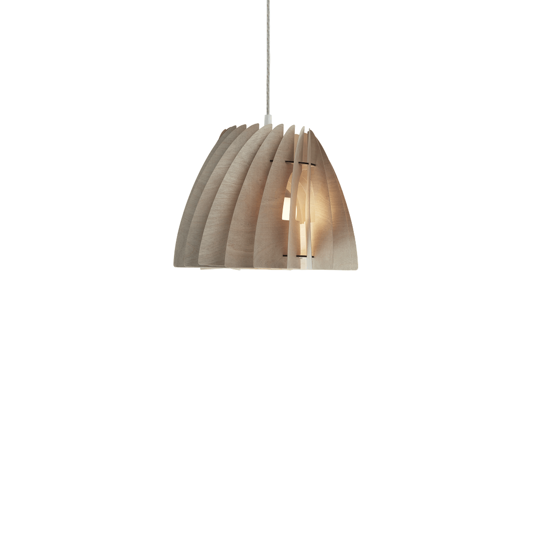 Lamp of volcanic shape. Light enters through the petals and crosses its construction which resembles lava flowing the slopes. Petals of the lamp are made of ultra thin birch plywood. Lightweight and slim lampshade to a simple self-assembly. Harmonically protruding petals give the lamp spacious look and dynamic character.